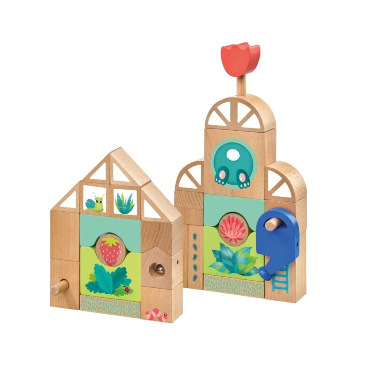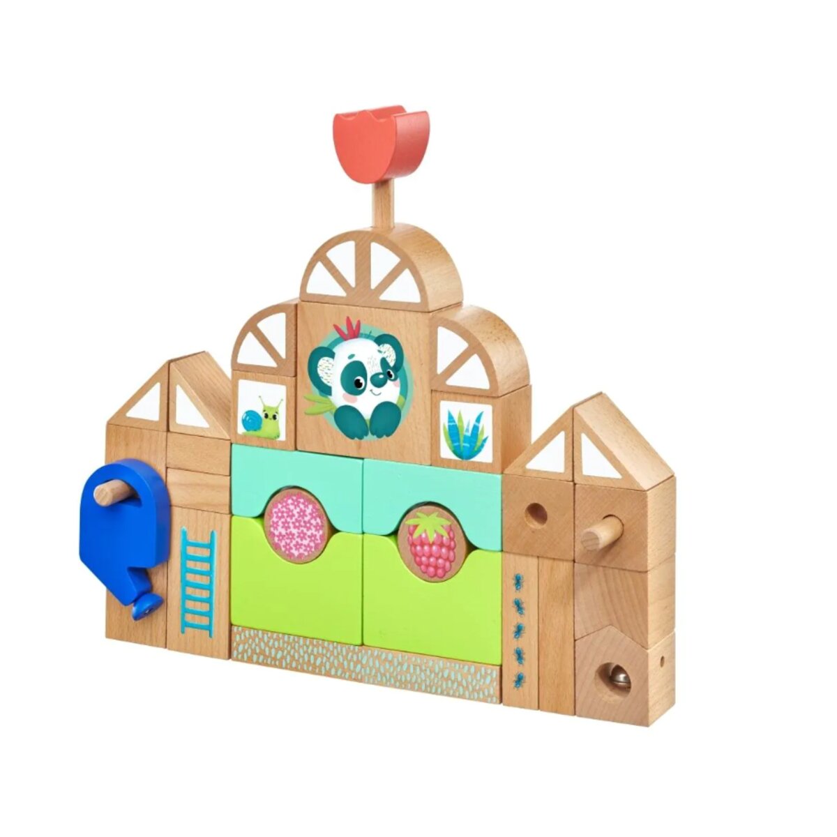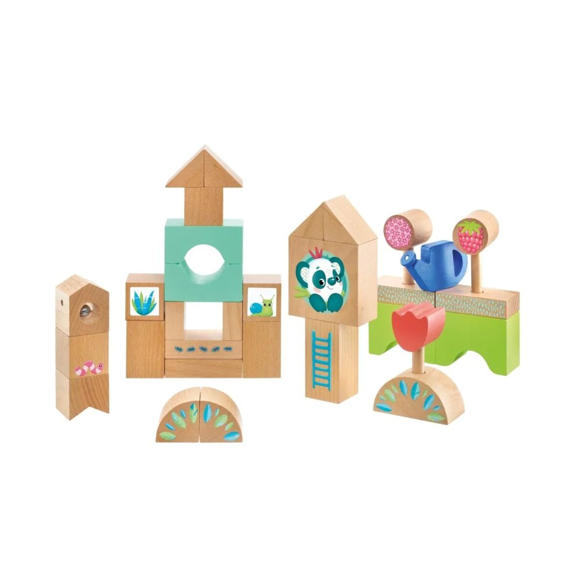 Hier entstehen Bauwerke in immer neuen Variationen: Ob fantasievolle Gebäude, kreative Gartenlandschaften oder hohe Türme - mit dem 34-teiligen Set aus massivem Buchenholz ist alles möglich. Immer wieder lassen sich kleine Krabbler und weitere liebevolle Details entdecken. Durch die vielfältigen Gestaltungsmöglichkeiten werden Kreativität, Feinmotorik, räumliche Wahrnehmung und Geschicklichkeit des Kindes gefördert und langanhaltende Spielfreude ermöglicht.