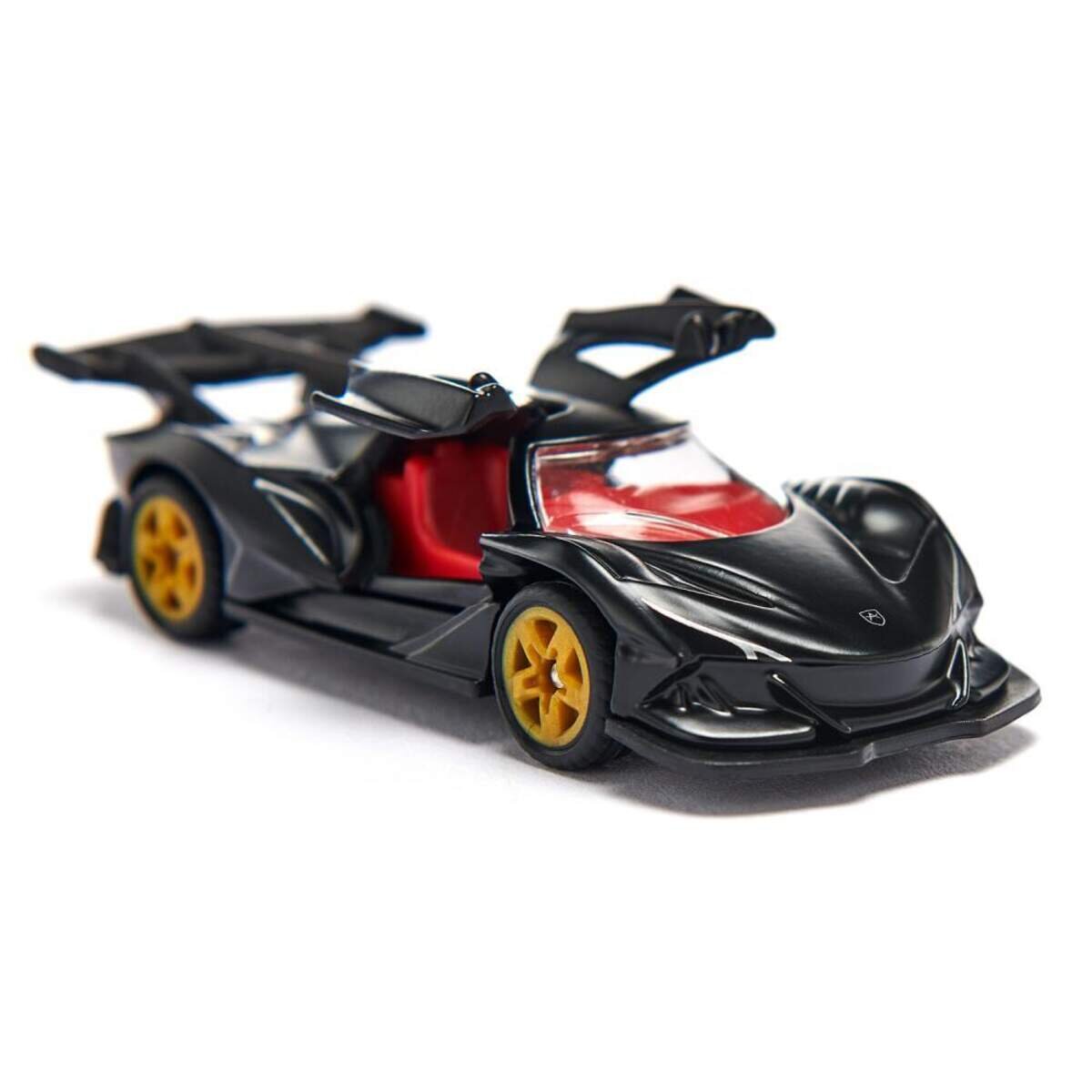 Dieses Auto wird seinem Namen gerecht: Apollo IE. Der Intenza Emotione erzeugt bereits im Stand „starke Gefühle“. Ein V12-Saugmotor mit 730 PS sorgt beim Anlassen für Vibrationen und beschleunigt den Apollo IE bis 334 km/h. Das mattschwarz lackierte Auto – wie von einem anderen Stern: scharf gezeichnete Konturen, ein riesiger Heckspoiler, der mit einer großen Finne überspannt ist. Die weit aufschwingenden Flügeltüren geben auch in der Miniatur für neugierige Blick den ganz in Rot gehaltenen Innenraum des Rechtslenkers frei.