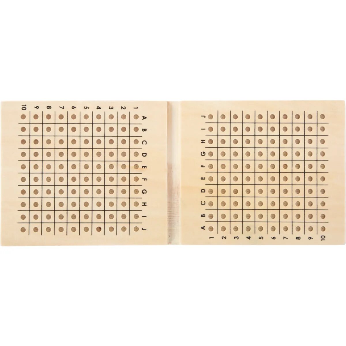 Wer findet die Flotte der Regattaschiffe? Dieses ganz aus Holz gefertigte Strategiespiel überzeugt durch außergewöhnliche, reduzierte Gestaltung mit edlen Gold-Akzenten in Kombination mit schlichtem Schwarz/Weiß, Pastellfarben und viel Naturholz. Mit seinen Regattabooten, Wasserfontänen und Segeln ist er die absolut friedfertige Interpretation des Klassikers „Schiffe versenken“! Durch im Rahmen eingelassene Magnete ist der Aufbau besonders stabil. Mit hochwertigem Spielkarton zur Aufbewahrung. Startschuss für die Regatta! Eine „dicke Nebelwand“ verhindert den Blick auf das gegnerische Starterfeld. Blaue Wasserfontänen zum Stecken zeigen während des Spiels an, wenn eine Koordinate neben einem Schiff angesagt wird, weiße Segel stehen für Koordinaten, an denen sich ein Schiff befindet. Praktisch: Die Koordinatenbrettchen können einzeln in der Hand gehalten oder in den Rahmen gelegt werden. Ein kompaktes Spiel – ideal auch für unterwegs und auf Reisen.