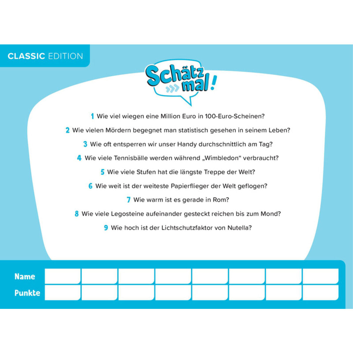 Lass deine Spieleabende neu aufleben mit Schätz mal!, dem ultimativen Spieleblock mit Schätzfragen! Dieses Spiel macht deinen Spieleabend mit Freunden und Familie zum ultimativen Erlebnis. Es ist mehr als nur ein Spiel, es ist eine Einladung, zusammen zu lachen, zu lernen und unvergessliche Momente zu teilen.