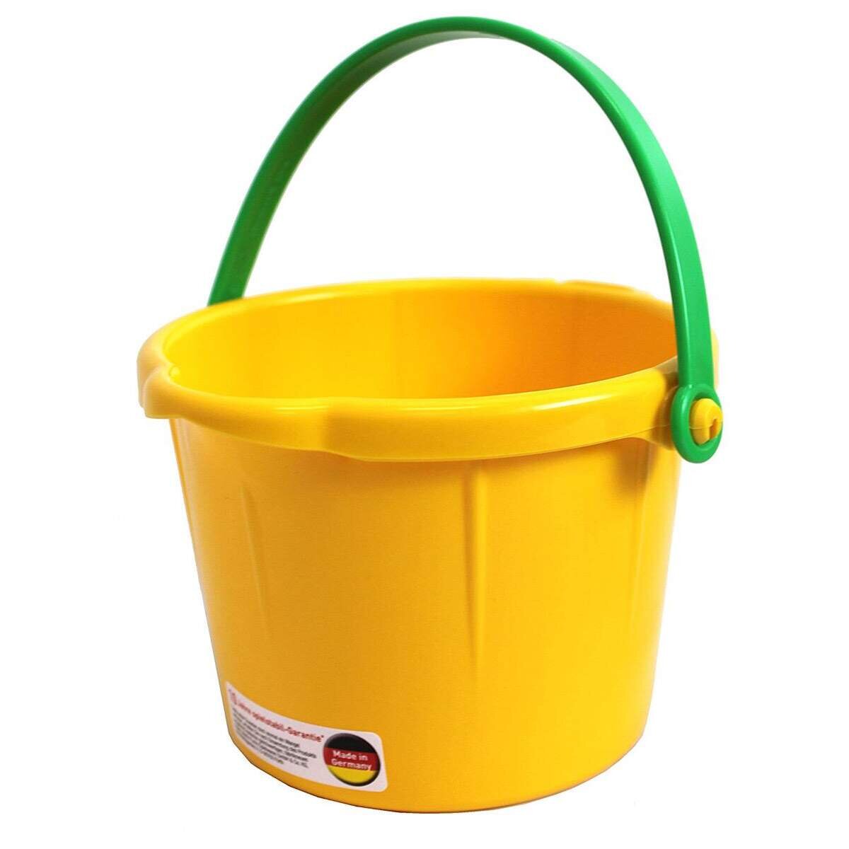 leiner Eimer in den classic-Farben von spielstabil mit praktischem Ausgussrand. Der klassische Sandeimer ist an der Innenseite mit einer Liter-Einteilung gekennzeichnet, geeignet für ca. 1,25 Liter. Das kleine spielstabil-Sieb passt optisch perfekt zu den dreifarbig sortierten Eimer, welcher in rot, blau und gelb mit einem jeweils grünem Henkel erhältlich ist.
