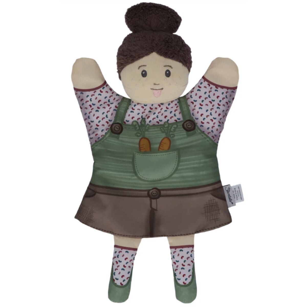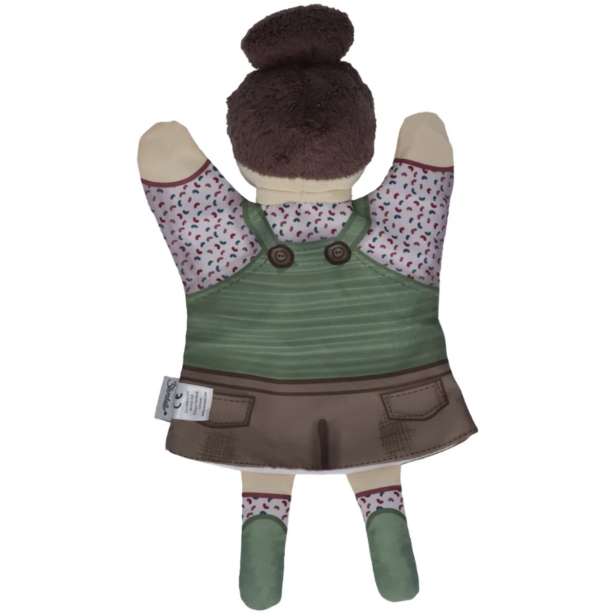 Handpuppe Luzy hat ein niedliches, gesticktes Gesicht mit Sommersprossen. Das Material der Puppe ist recyceltes Polyester. Der Körper von Luzy ist durch einen Digitaldruck bedruckt. Ein Digitaldruck ist nachhaltiger, da weniger Farbe und deutlich weniger Wasser als bei eingefärbten Textilien verwendet wird. Sie fördert die Kreativität und die Phantasie deines Kindes und bietet die Möglichkeit von Rollenspielen oder zum Erzählen von Geschichten. Kinder können ihre Vorstellungskraft verbessern und die Kommunikationsfähigkeit stärken.
