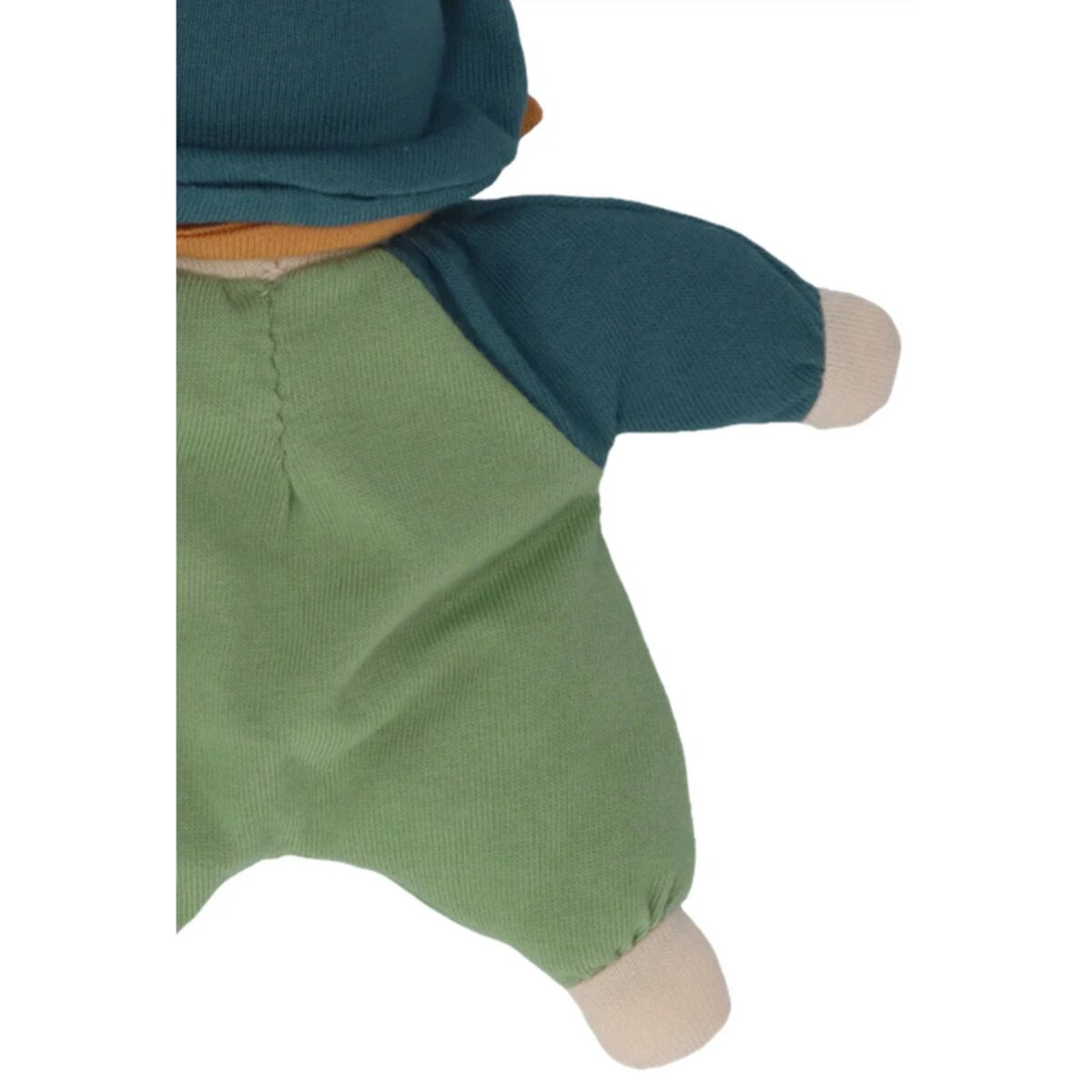 Die Spielpuppe Hexe in ihrem dunkeltürkisem Kleid ist der ideale Wegbegleiter für dein Baby. Dank des weichen und angenehmen Materials, dem gesticktem Gesicht und der integrierten Rassel eignet sich die Spielpuppe bereits bestens ab Geburt für dein Kind. Die eingesetzte Rassel lädt zum Spielen und Entdecken ein und fördert gleichzeitig die Motorik deines Babys. Ein entzückender Begleiter.