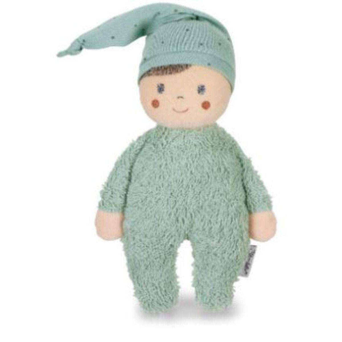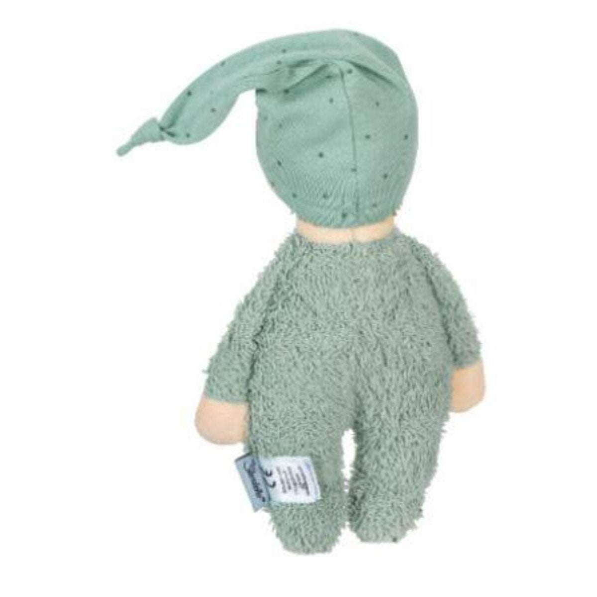 Spielupppe S Maxi aus Frottee, Nicki und bedrucktem Singlejersey. Mit eingesetzter Rassel im Kopf. waschbar bei 40 ° Frottee: 90 % Baumwolle, 10 % Polyester; Nicki: 75 % Baumwolle, 25 % Polyester; Singlejersey: 100 % Baumwolle