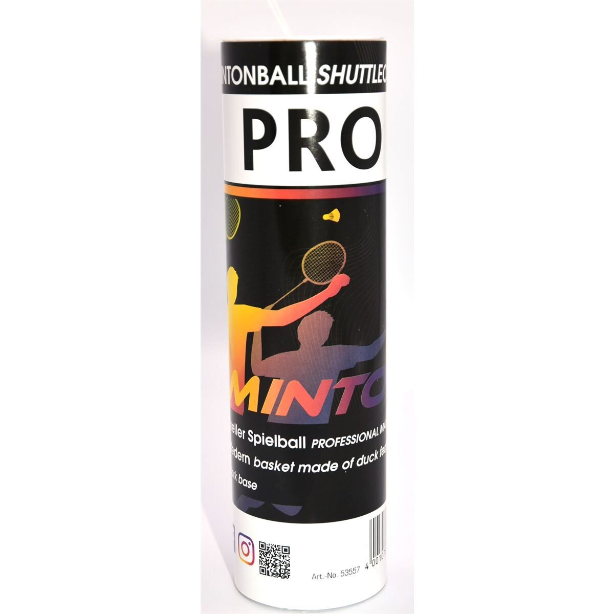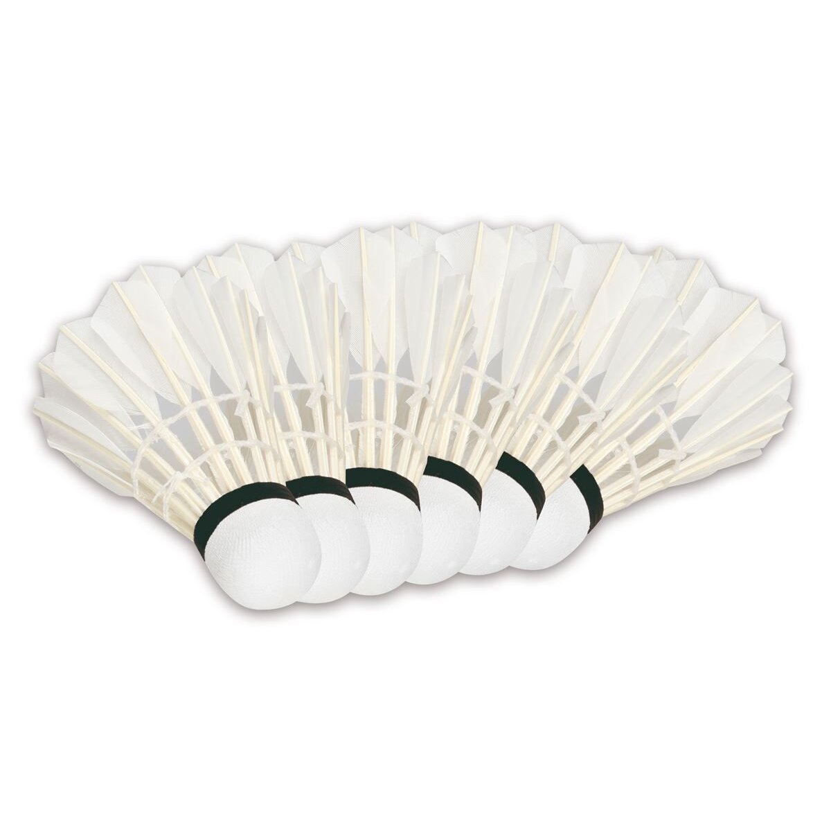 sunflex Badmintonball PRO 6. Professioneller Spielball aus Entenfedern und mit Korkfuß, 6 Stk, weiß. In Plastikdose mit Aufhängung.