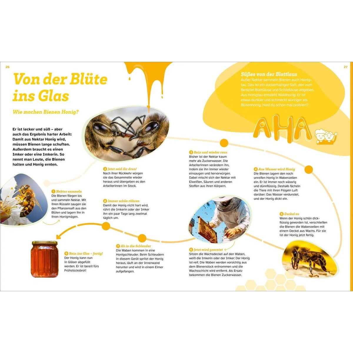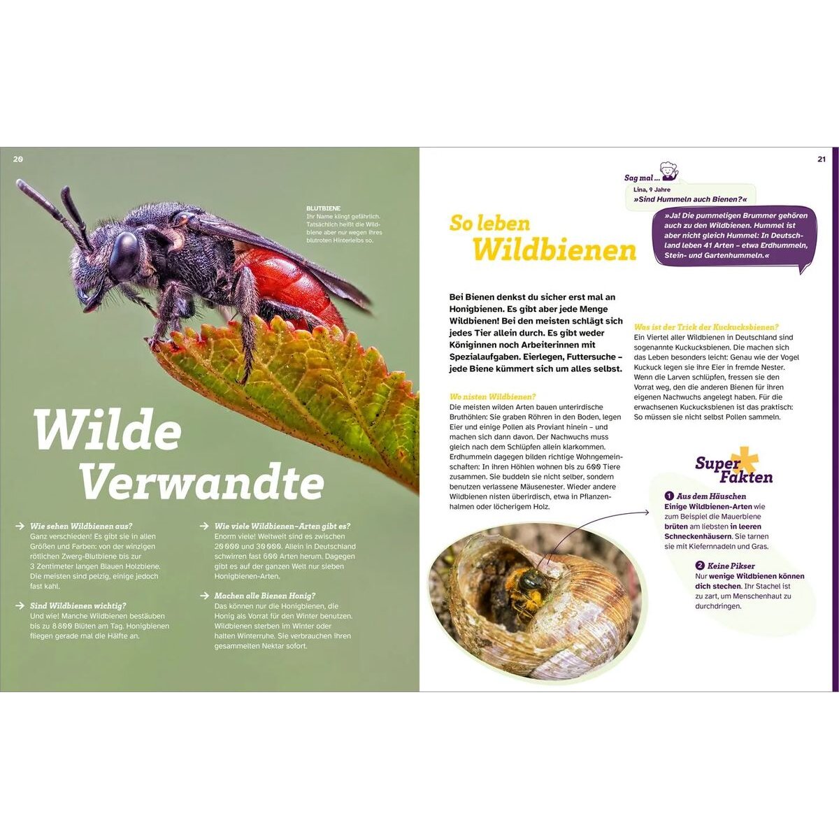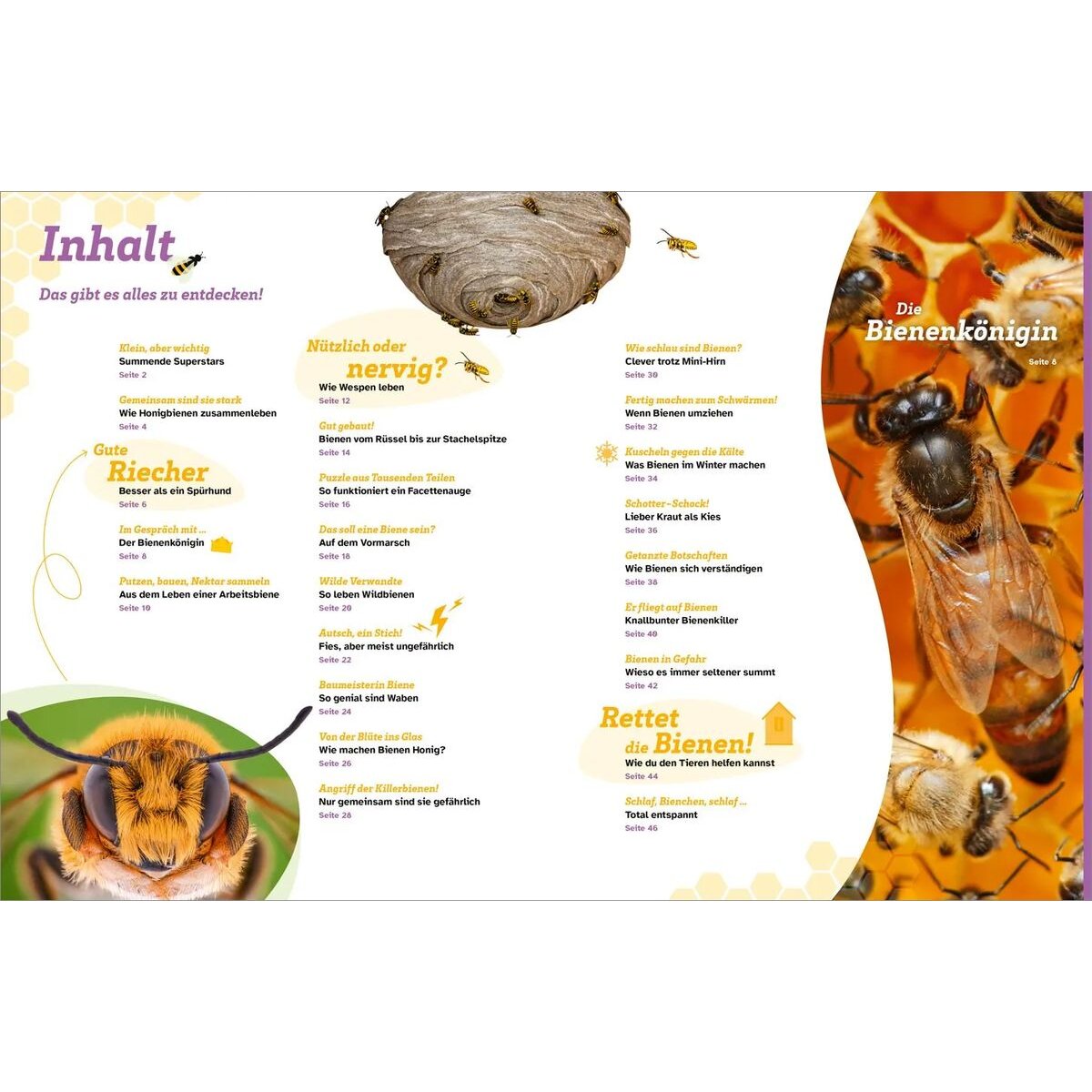 Für ein Glas Honig müssen rund 200 Bienen ihr Leben lang arbeiten - mit einer einzigartigen Arbeitsteilung: Die Königin regiert ein Volk aus Drohnen, Wächterinnen, Putzerinnen und noch vielen weiteren Bediensteten. Doch der Einsatz von Pestiziden und der schrumpfende Lebensraum bedrohen die fleißigen Insekten. Wir zeigen mit eindrucksvollen Nahaufnahmen und verblüffenden Fakten, was Bienen leisten und warum sie für den Erhalt des Ökosystems so wichtig sind. Die Leserinnen und Leser begeben sich in einen Bienenstock und lernen den Bienenstaat kennen. Sie erfahren, wie die Aufgaben verteilt sind, wie Honig gewonnen wird und warum der Schutz der Bienen so wichtig ist. Ein Sachbuch für Kinder ab 8 Jahren.