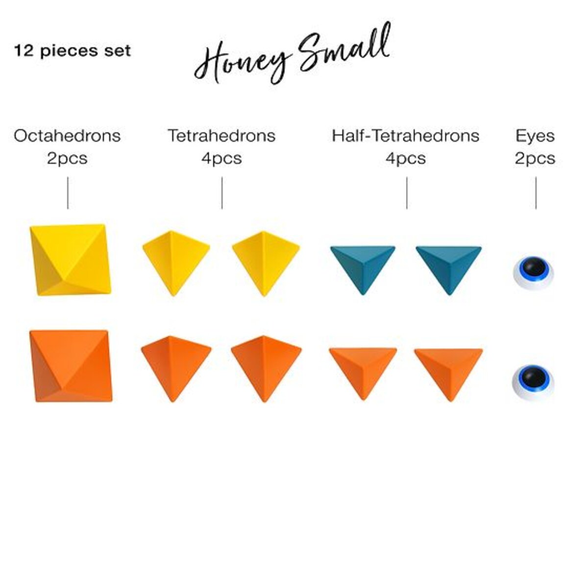 2 Oktaeder, 4 Tetraeder, 4 Halbtetraeder, 2 Augen (insgesamt 12 Stück) + Flugblatt.
