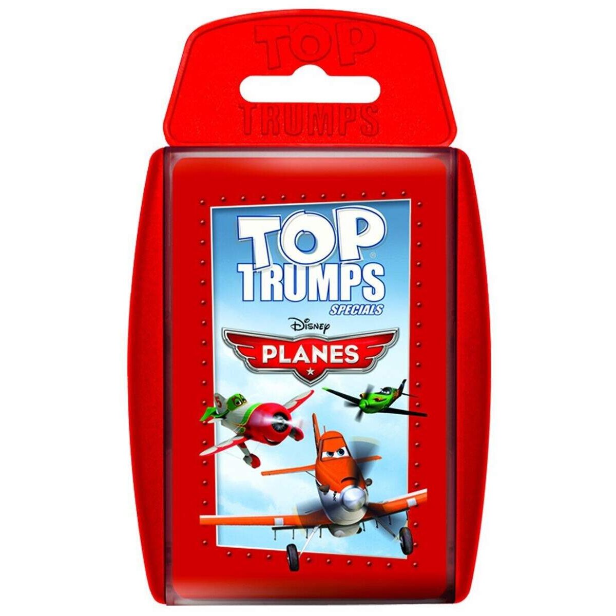 TOP TRUMPS PLANES ist das Trumpfkartenspiel zur Walt Disney`s computeranimierten 3D-Abenteuerkomödie rund um die rasanten Flugzeuge, von denen jedes das Schnellste sein und bei der „Wings-Around-the-Globe“-Rallye gewinnen will. Das kleine, aber schnelle Sprühflugzeug Dusty, das stürmische Duo Ned und Zed, die alte Bulldog und das fliegende Auto Franz sind drei von 30 Charakteren, die in den Kategorien „Abenteuer, Courage, Humor, Freundschaft und Renntempo“ um Platz 1 kämpfen. TOP TRUMPS PLANES holt dich hoch nach oben die Welt der Flug-und Fahrzeuge, in der auch die begeisterten und treuen Fans eine große Rolle spielen. Guten Flug!